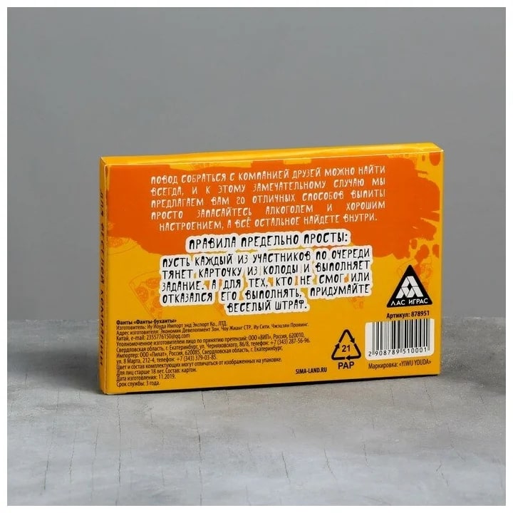 Купить игра для компании "фанты буханты" 20 карт от 100 руб. с доставкой до пункта выдачи в Туапсе. Интернет магазин ДекаМаркет. Оплата при получении.